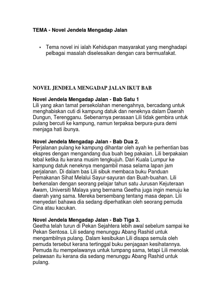 Novel1 Docx Novel Jendela Menghadap Jalan Persoalan Novel Yang Saya Kaji Di Tingkatan 4 Ialah Novel Jendala Menghadap Jalan Karya Ruhaini Matdarin Course Hero